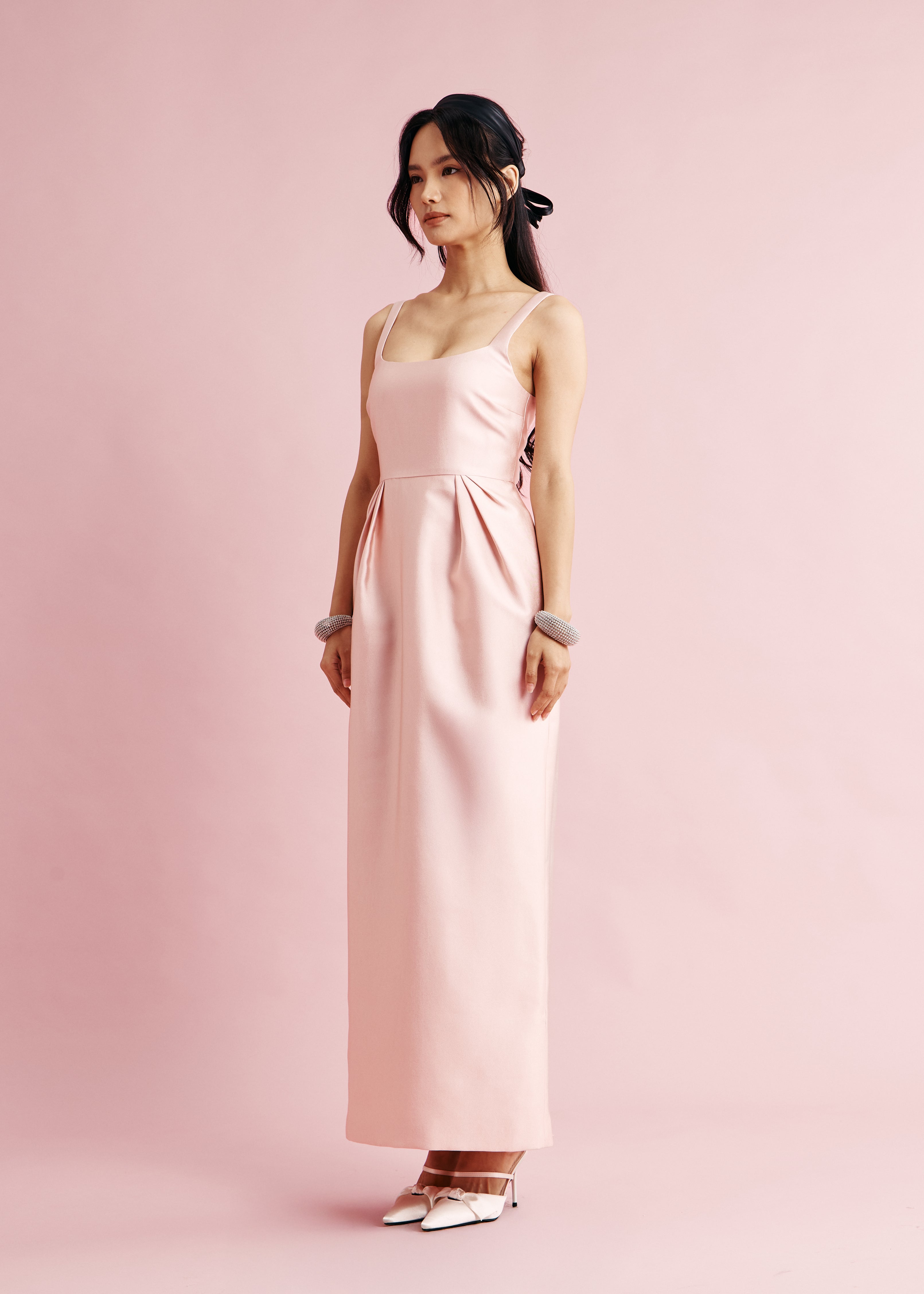The Laced Up Tulip Dress in Dusty Pink