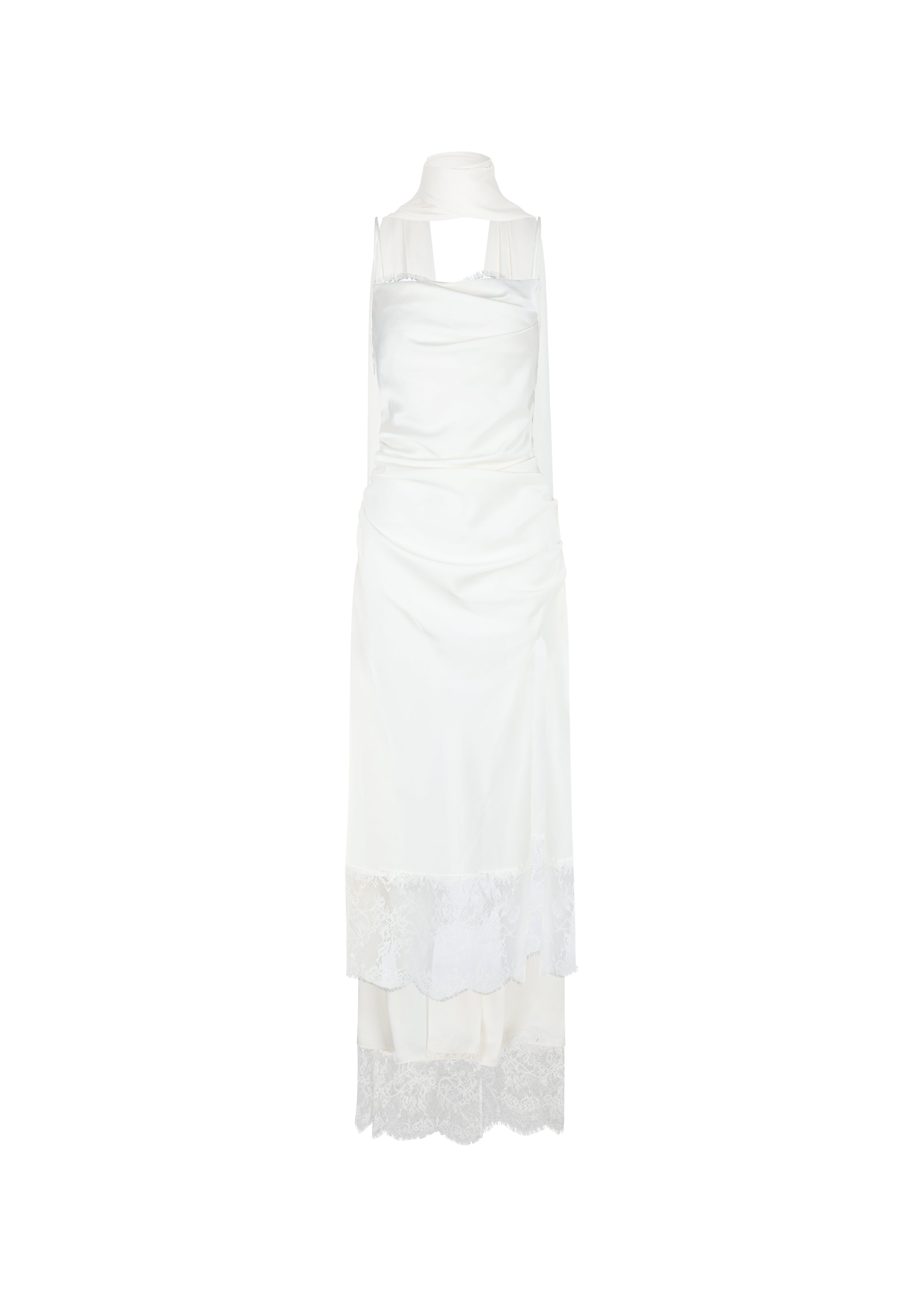 The Serenade In Satin Midi Ceremony Dress in Cream