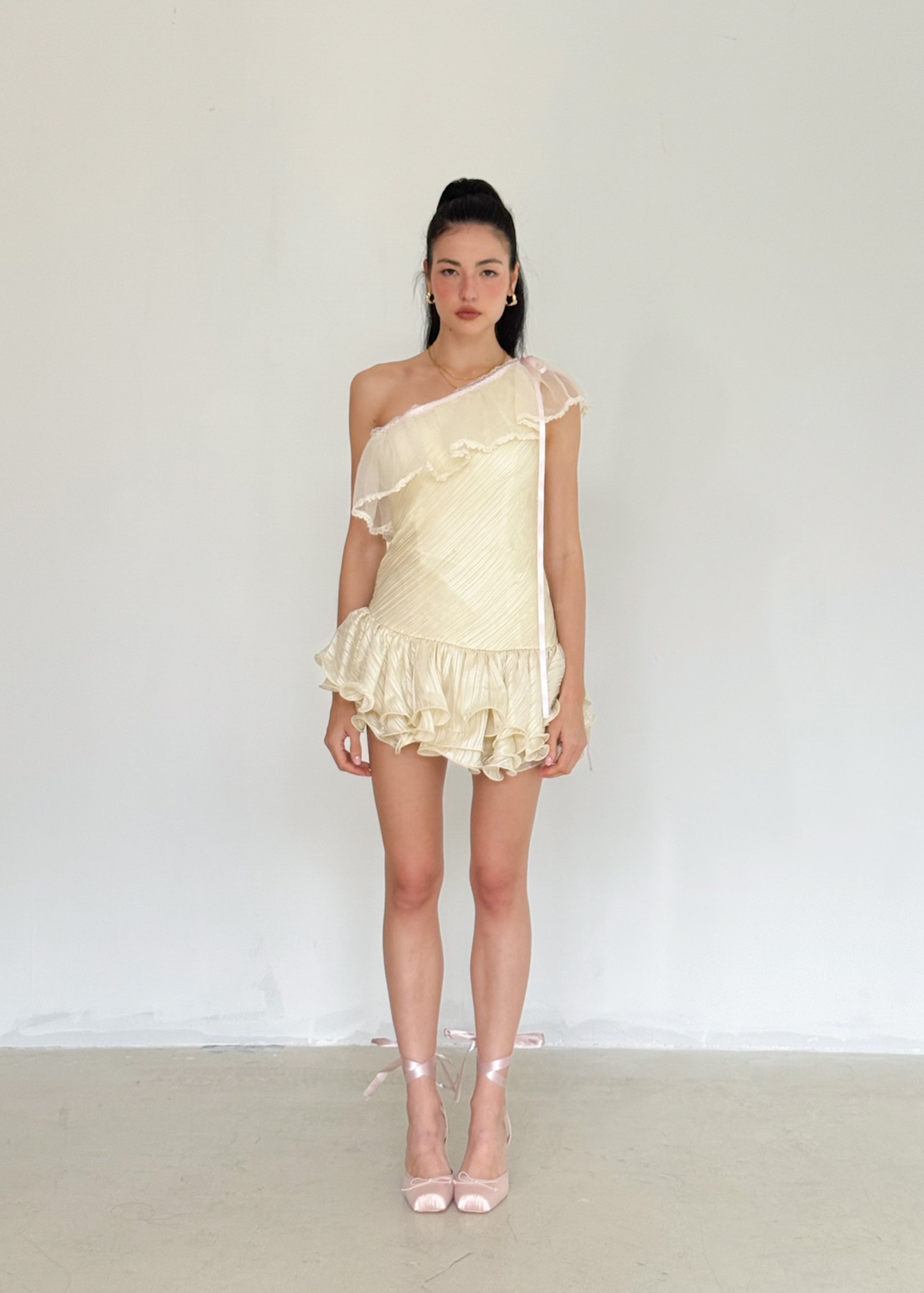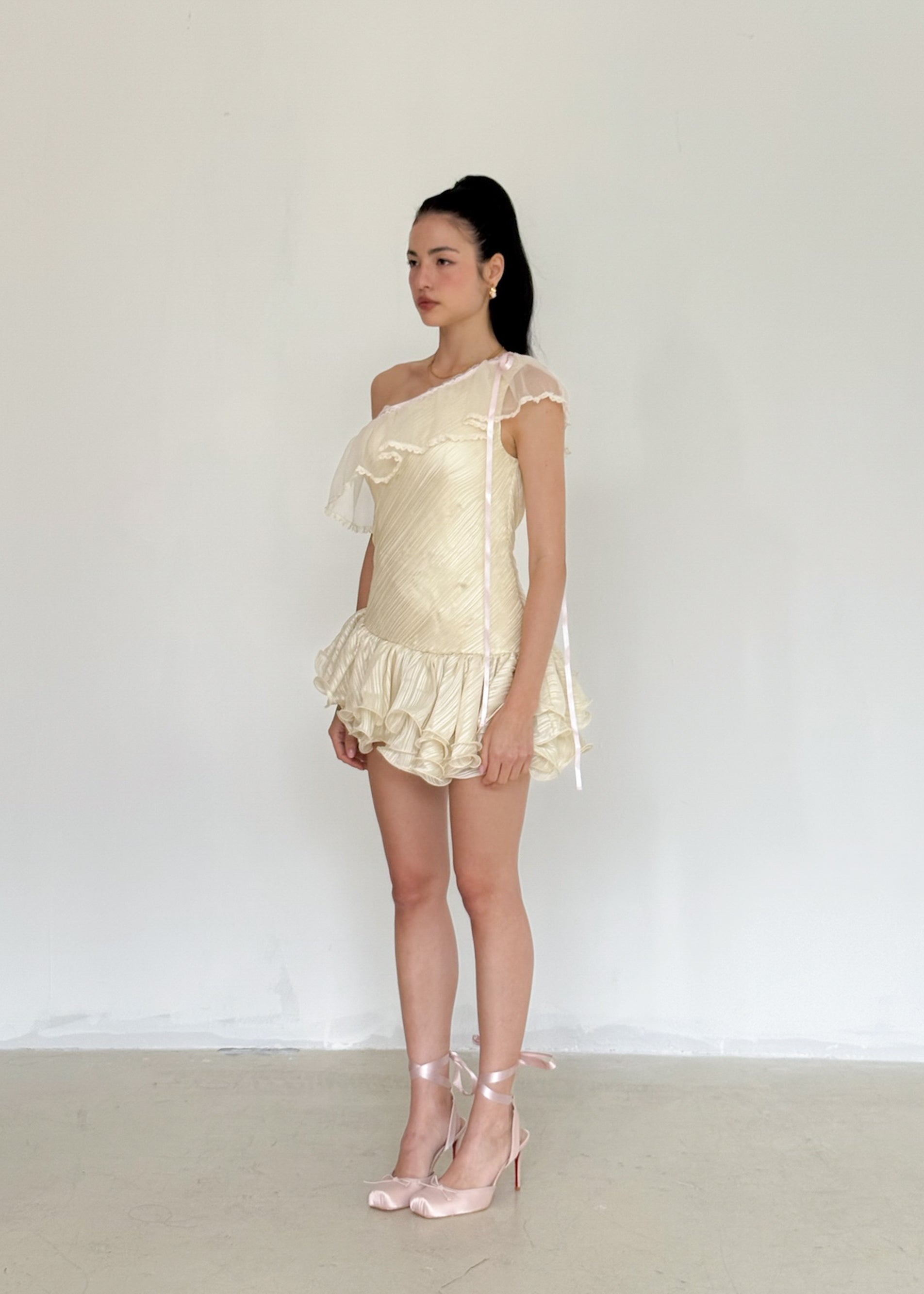The Vanilla Puff Waves Mini Dress in Meringue